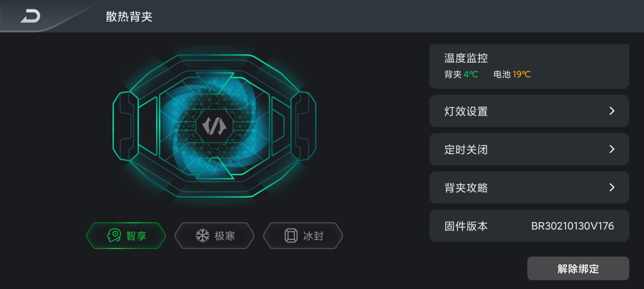 而黑鲨冰封散热背夹2 Pro风扇的工作声音比蚊虫的嗡嗡声略高一些,远比笔记本风扇声音要小得多。比较抢眼的是在LED显示屏直观展示当前温度,更加直观明了。通过游戏空间可以进行相关配置,懒人可以选择智享,根据温度自动调节档位。比较炫酷的还有背灯效果,特别是在《王者荣耀》五杀、超神等瞬间,配合可调节的灯效,在晚上你就是全场最炫的仔。