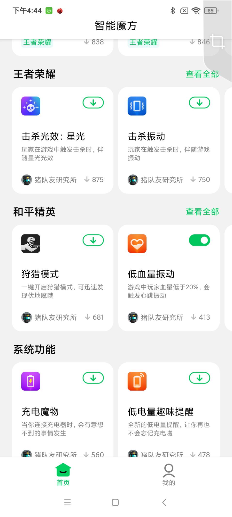 本次黑鲨4全系新增了两个比较抢眼的功能,一是智慧魔方,类似端游增强补丁的设定,玩家根据自己需要选择下载能够增强游戏细节体验,例如血量过低会有心跳震动,人数战况提醒等。