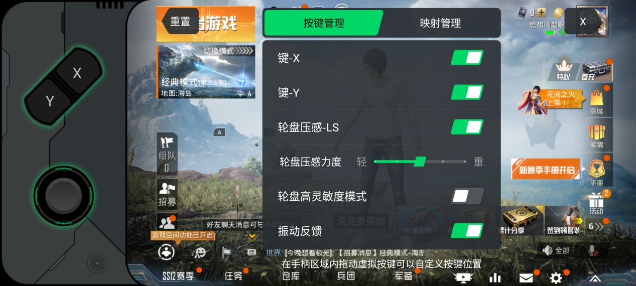 此外通过这两个肩键我们还可以实现很多快捷操作,比如双按能直接打开游戏空间,单按一边可以截图一边则是迅速小窗化。在《和平精英》中,利用肩键我们可以通过映射,一键可以轻松完成开启和关闭地图两个连贯的动作,配合不断优化的语音操控,通过语音发出指令,可以实现“蹲下”、“手雷”、“换弹”等各种操作,显著提高我们的操作效率和减轻操作强度。当然还有之前就有的宏设置功能,笔者也非常喜欢。通过简单的操作路径录制一套动作,便可实现动作重放。大家都知道,例如SLG这个品类的游戏,游戏中有大量重复单一的行为操作,特别耗时间,有了宏功能后,可以将玩家从这种枯燥乏味的爆肝游戏中解救出来。
