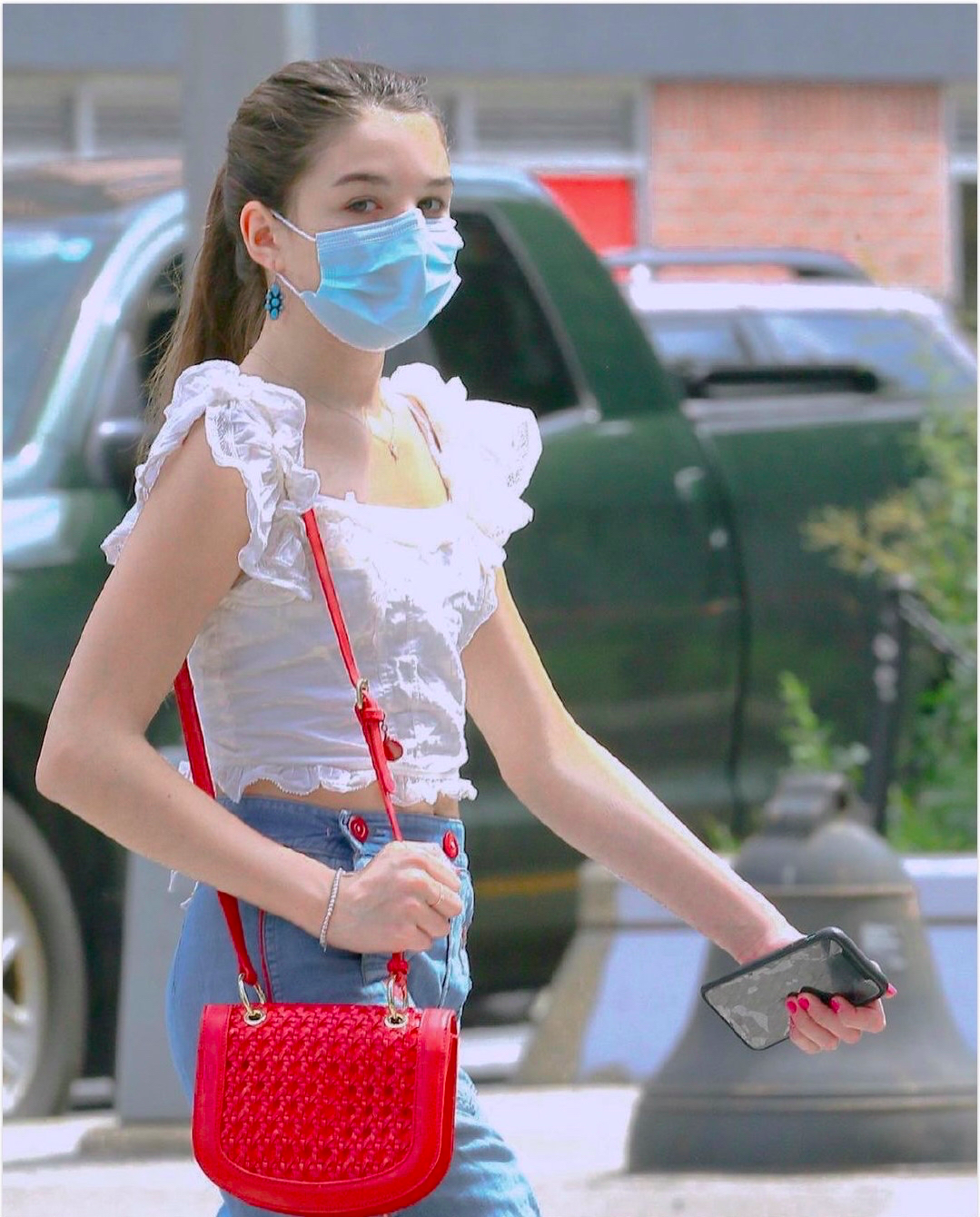 这么看她眉眼间真的很像阿汤哥了,戴上口罩都能看出一股倔强的劲儿,真是一个模板刻出来的。