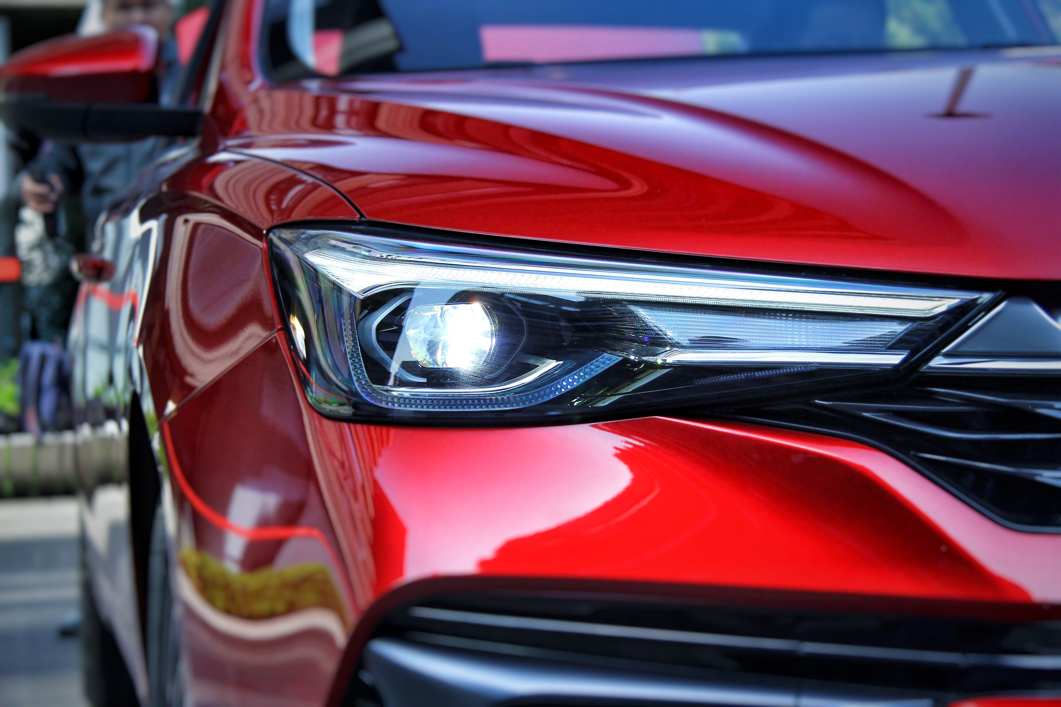 LED大灯由格栅电镀饰条横向连接,细节衔接细腻,日间行车灯形如书法折锋笔式,使得车头线条显得苍劲有力。