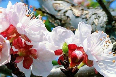 杏花有变色的特点,含苞时为纯红色,开花后颜色会逐渐变淡,花落时会变成纯白色。