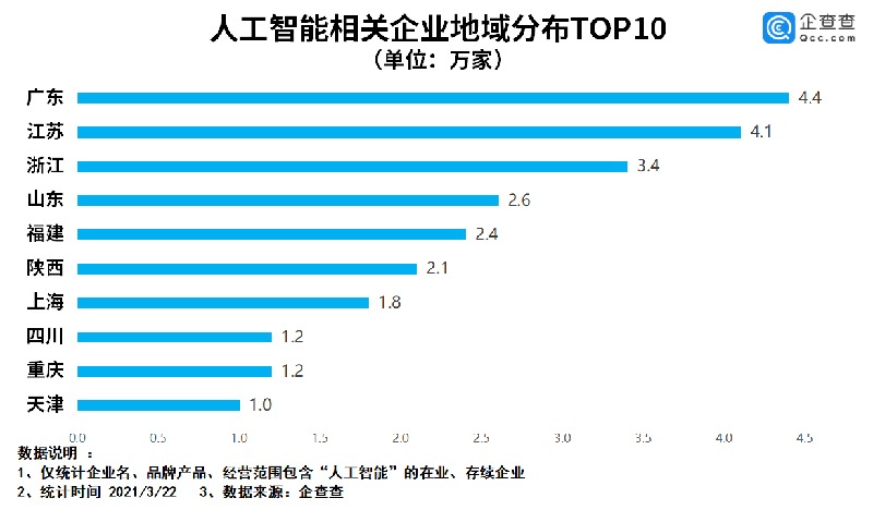 原标题:全国人工智能相关企业数量排名出炉 陕西居第六位