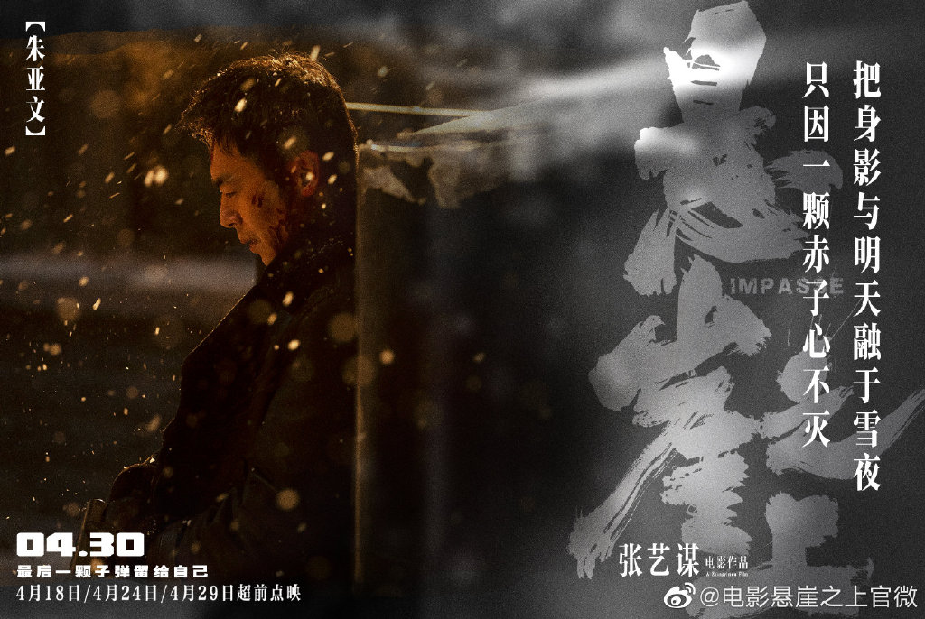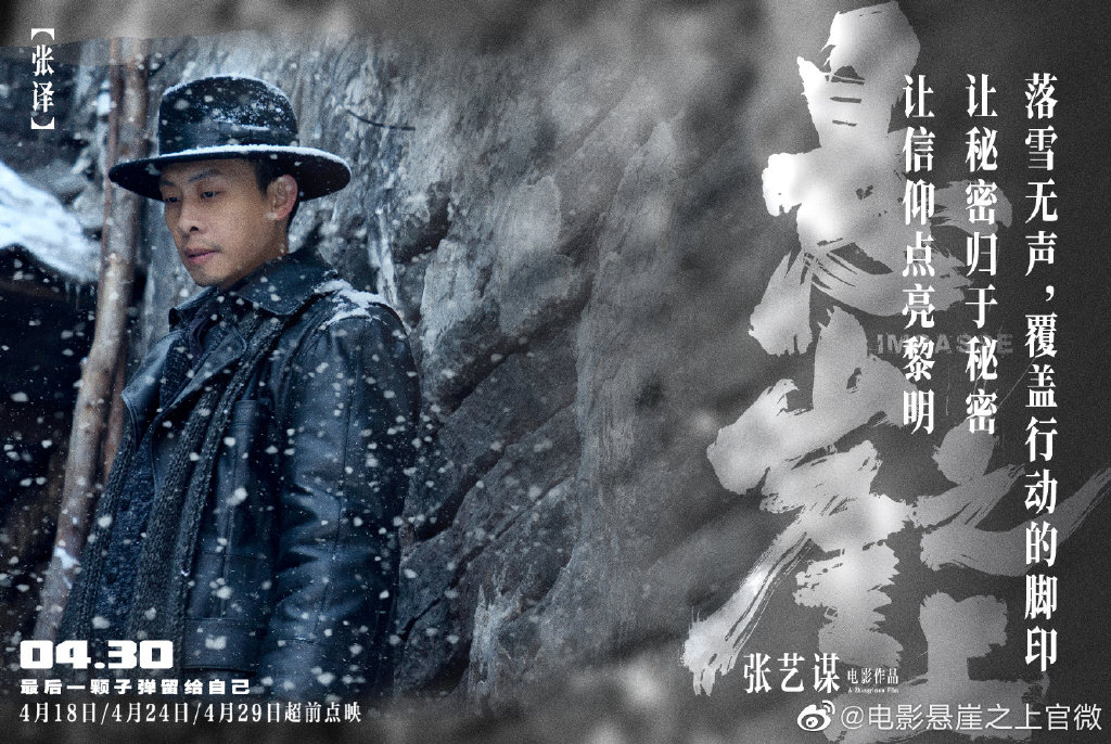 新京报讯 3月26日,张艺谋执导的谍战电影《悬崖之上》发布一组“雪掩杀机”版海报,结合影片全程下雪的概念设定,将凛冽大雪下覆盖的秘密与人性真相逐一剥露,呈现出张译、于和伟、秦海璐、朱亚文、刘浩存、倪大红在这场冰城秘局之中的不同瞬间。该片将于4月18日、4月24日、4月29日进行超前点映,4月30日正式上映。