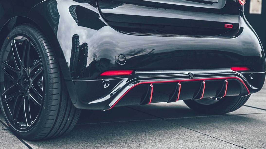 外观方面,新车的进气格栅与前后保险杠都换装了巴博斯的黑化改装套件,轮毂也换装了更大尺寸的铝合金轮毂,红色饰条的加入使车身更显灵动。虽然车尾没有保留排气管的设计,但加装的扩散器还是营造出较强的性能感。
