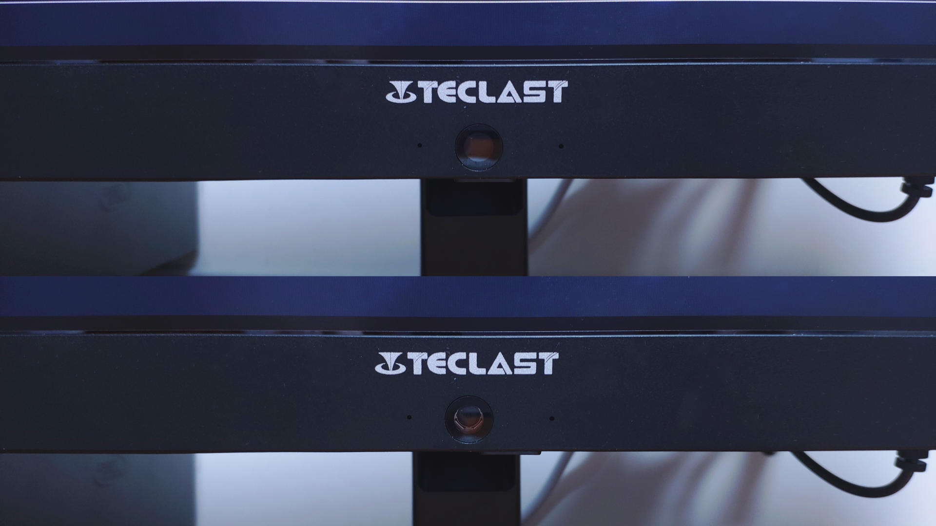 机身前面板下端正中logo处设计了一颗500万像素的前摄,拨动盖板可以进行物理遮挡,保护隐私的细节很到位,前摄两侧的小孔是麦克风,这样使用台电C24 Air A8C就能进行视频通话了。