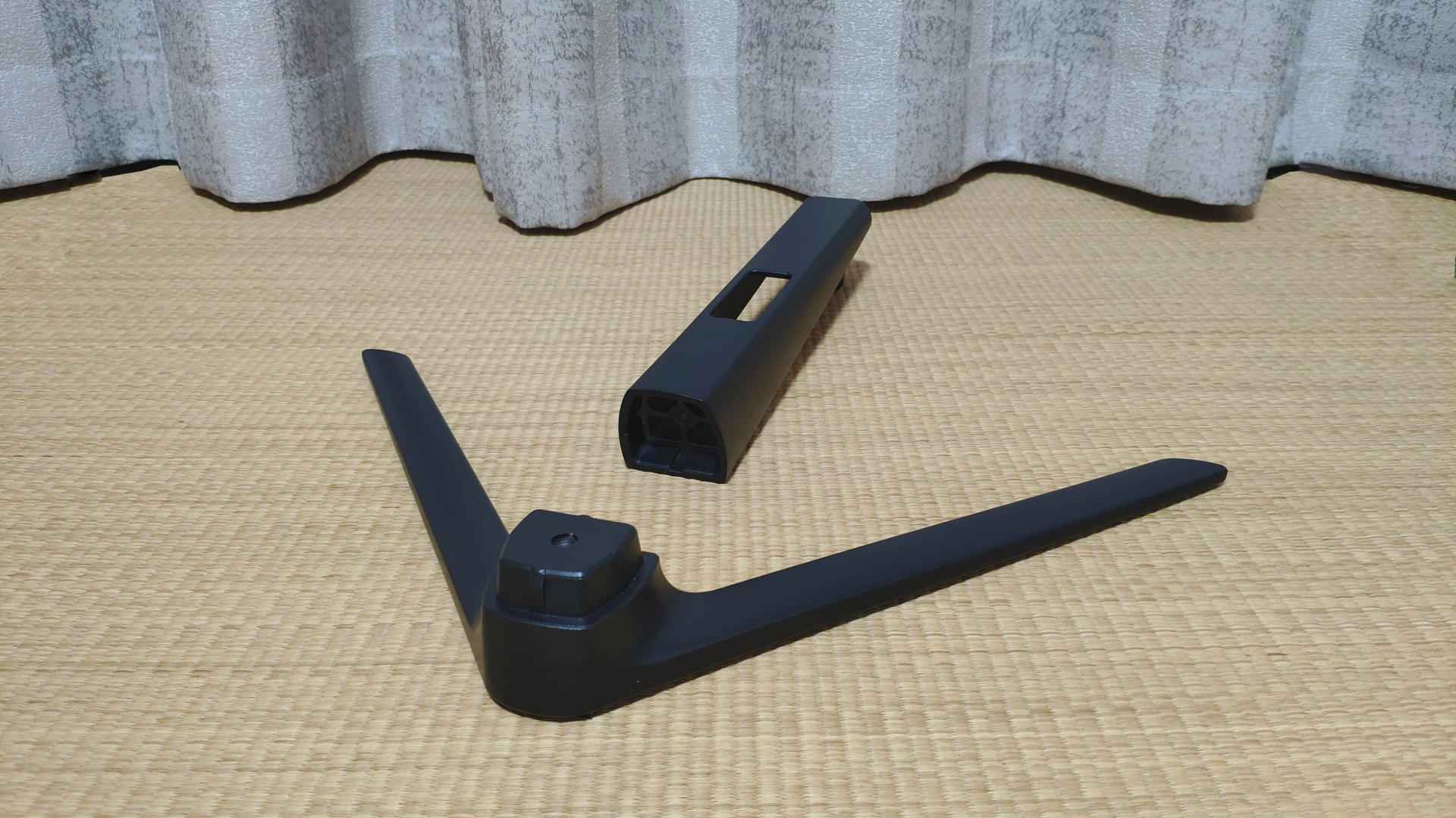 再往里是一体机的铝合金底座,在手里颠了下,能感觉出份量很足,刚性足够给一体机提供支撑了,需要自行动手装一下,也就是拧一颗螺丝的工作量。