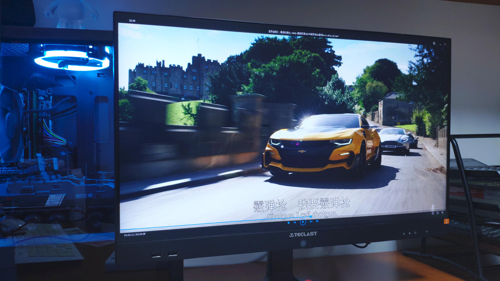 这块23.8寸的IPS屏搭配1920*1080分辨率的效果挺好,测试过没有坏点,左上右边框都是3mm宽,搭配黑色的机身类似无边框设计。