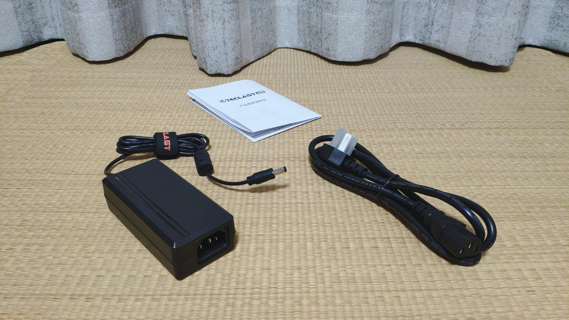 拆箱码出配件,先是AC适配器和电源线,电源线是台式电脑通用的那种线,电源适配器算是专属配件了,输出参数是12V/4A,也就是可以输出48W的功率。