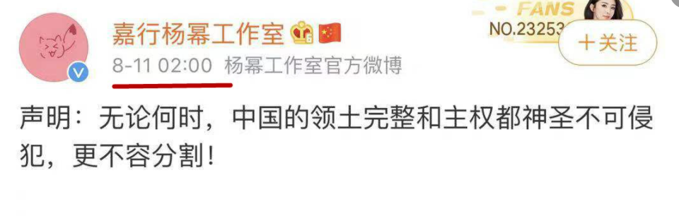 在此之前的8月11日,杨幂凌晨两点通过工作室微博紧急发布声明,表示与涉事奢侈品牌解除合约并终止全部合作。