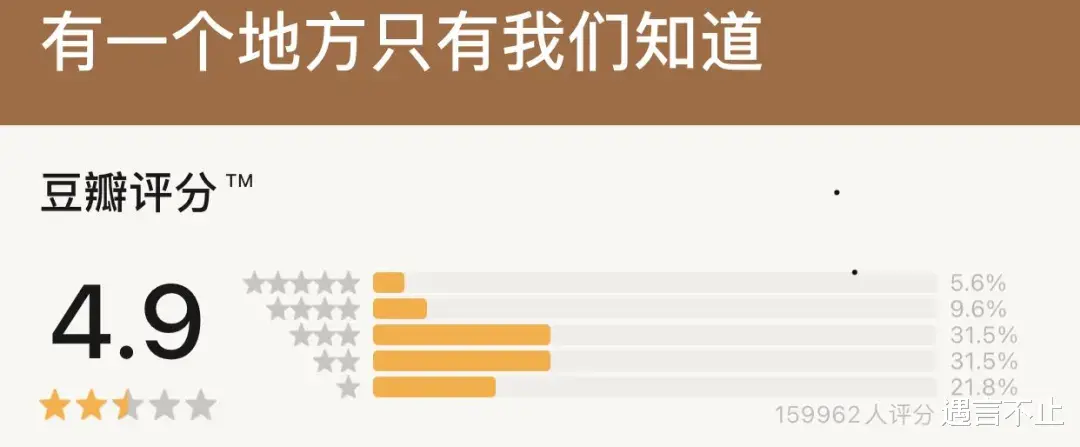 结果,《有一个地方只有我们知道》电影上映,豆瓣评分4.9。