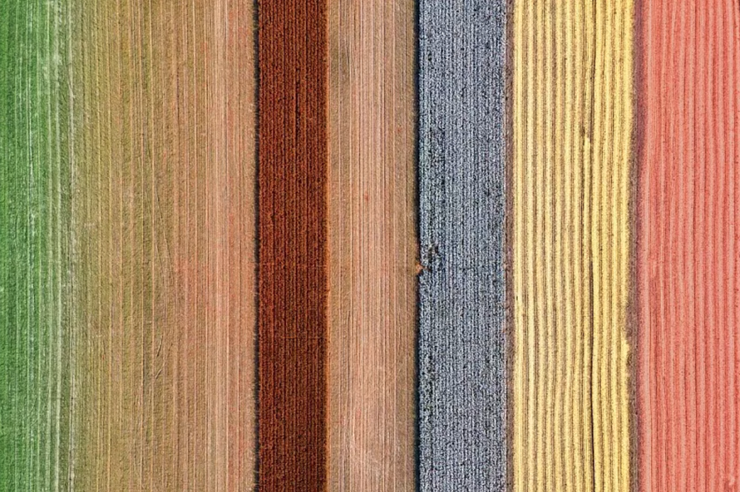 位于北疆的石河子特产一种棕色短绒棉。每年丰收时节,棉花与其他农作物拼接成高饱和的彩色地图。