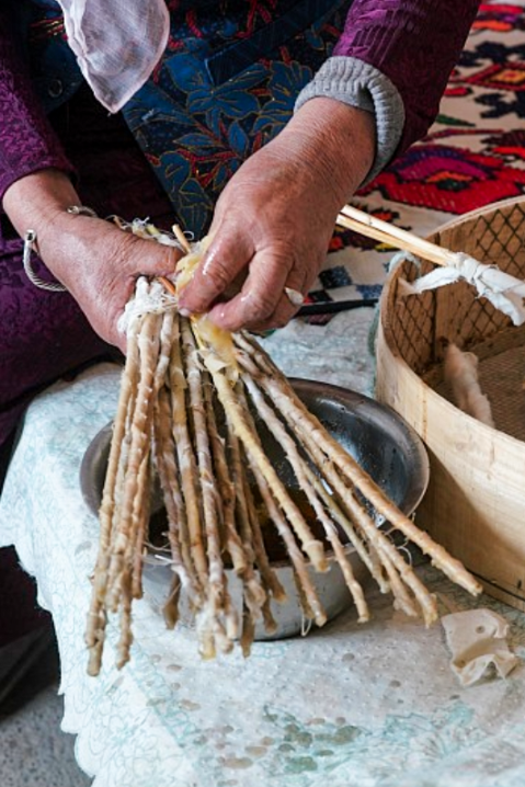 虽有许多游客涌入此地,好在当地居民还会保留着自己生活节奏。在喀什老街闲逛,仍能在巷子里找到弹棉花的老铺,阳光里满屋飘着棉絮,画面唯美到不忍走开。