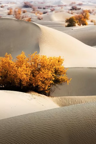 其中,塔里木胡杨林公园是新疆面积最大的原始胡杨林公园。秋日前往,路上随时能看到一片片雪白棉田,动人心魄。