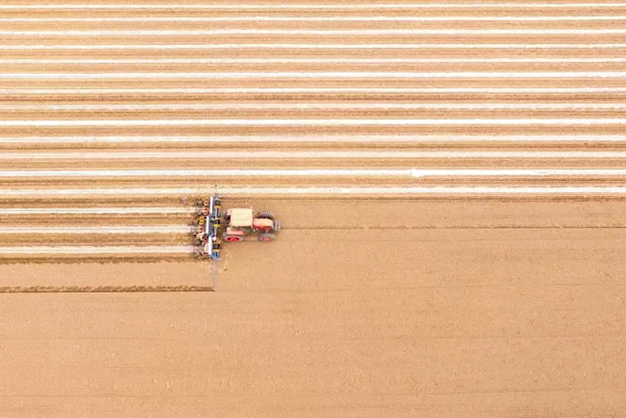 △ 阿克苏的春天,大型播种机正在播种棉花