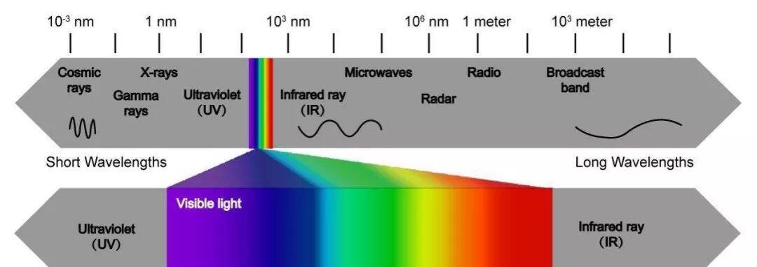 图解:电磁波和可见光波谱 图源:xianjichina