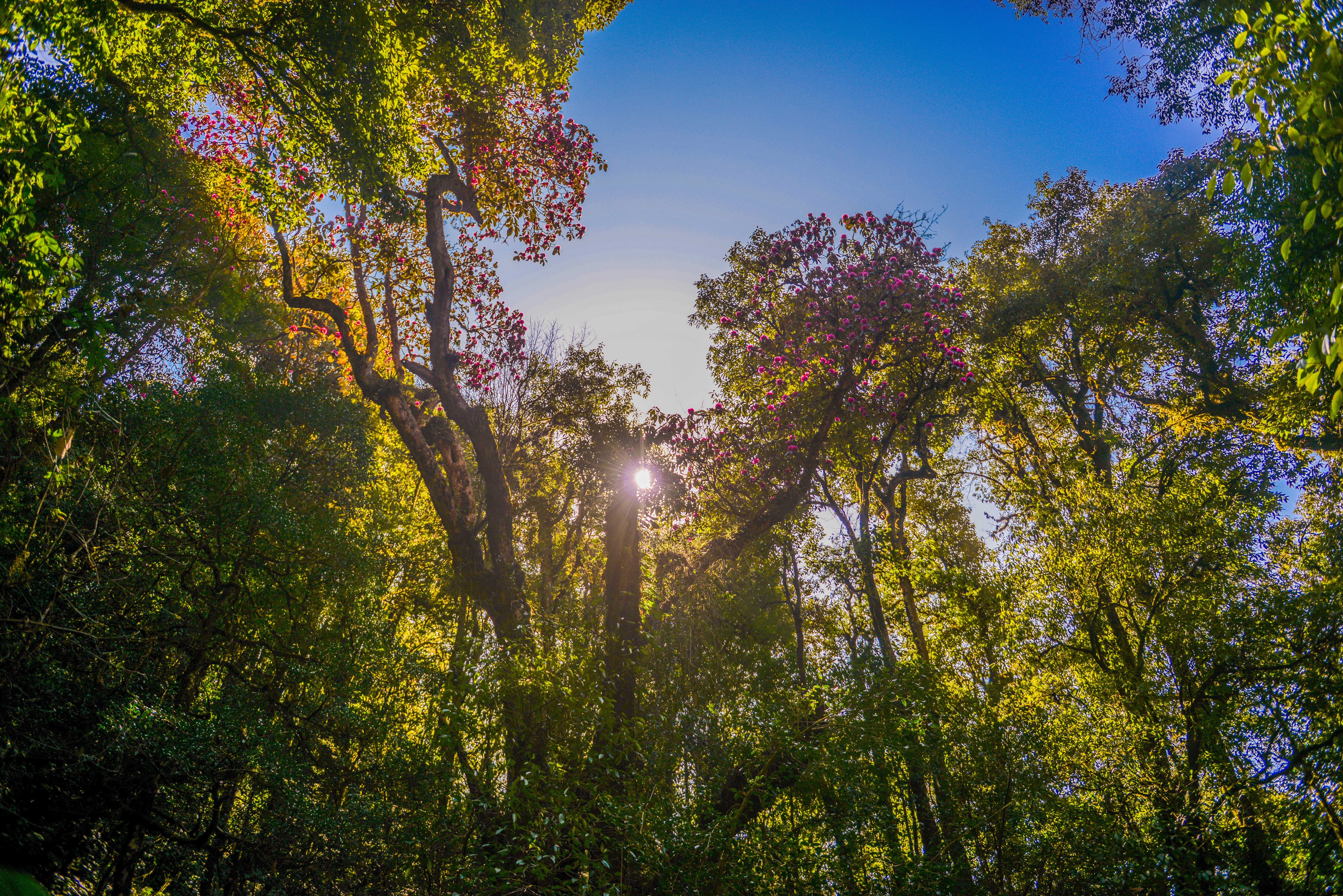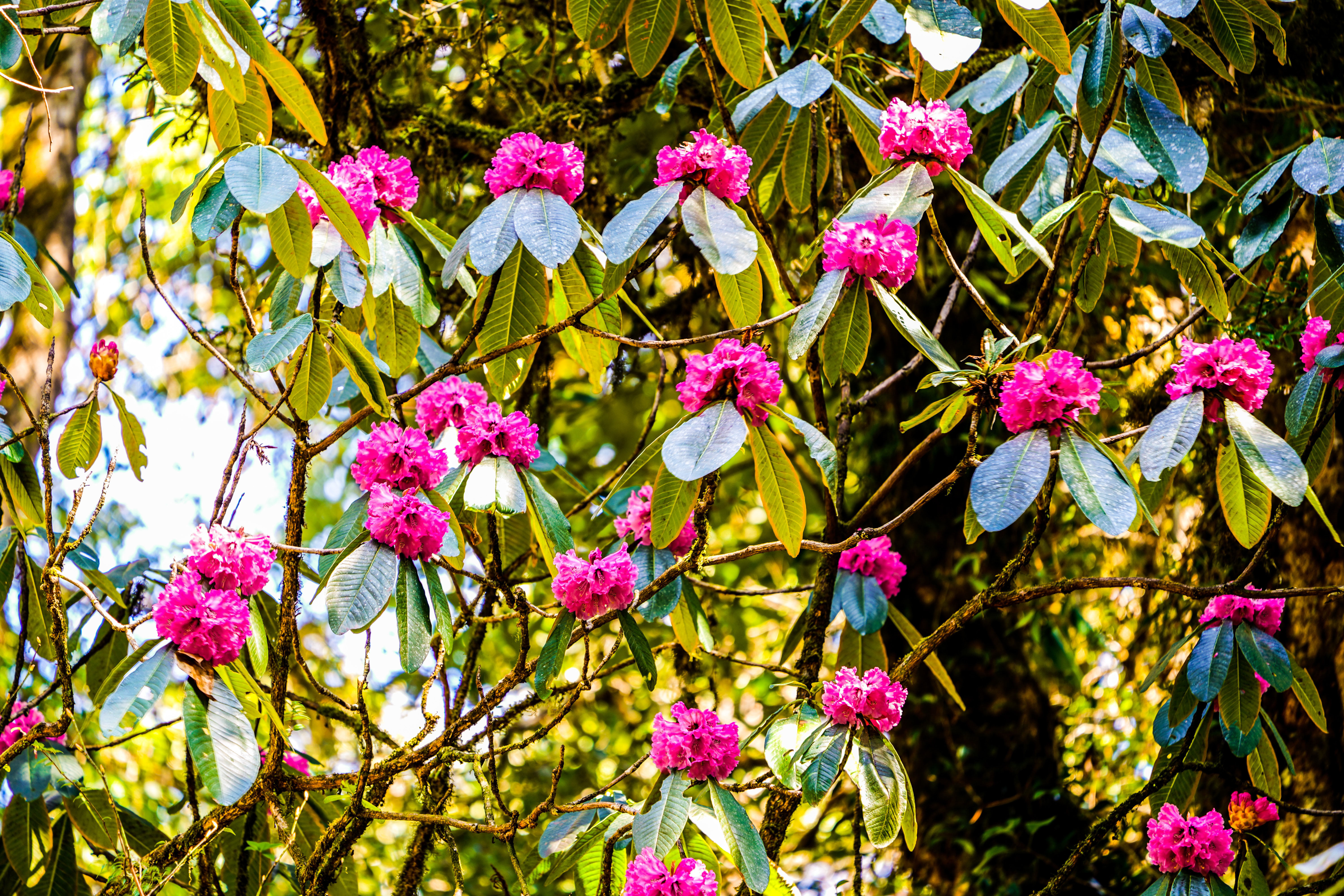 大树杜鹃(Rhododendron protistum var. giganteum),杜鹃花科,杜鹃花属。是杜鹃花属中最高大的乔木树种,属于原始古老类型,具有极高的科学研究价值。大树杜鹃仅仅生长于高黎贡山海拔2100米至2800米的常绿阔叶林中,叶片肥大,花朵娇艳。每年1月至3月,伴随着高黎贡山积雪的消融,大树杜鹃开始绽放。