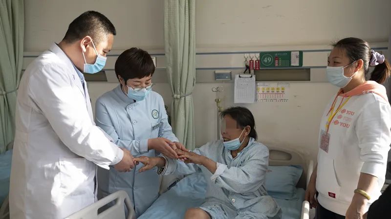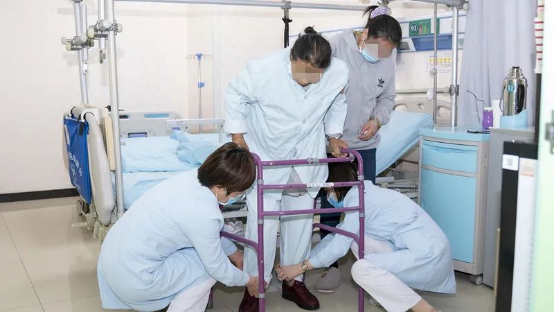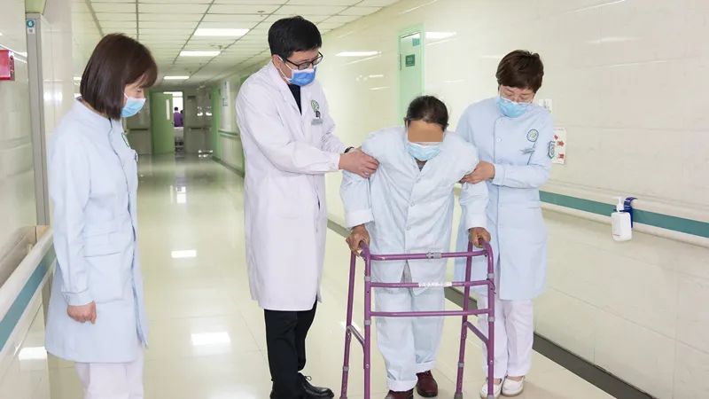 站起来的那一瞬间,彭女士用一口过于蹩脚的普通话,激动地叫了几声“好”。一步两步三步……走廊里,王延军主任和张亚辉护士长,轻轻地搀扶着彭女士,在器具的辅助下,慢慢地走着。