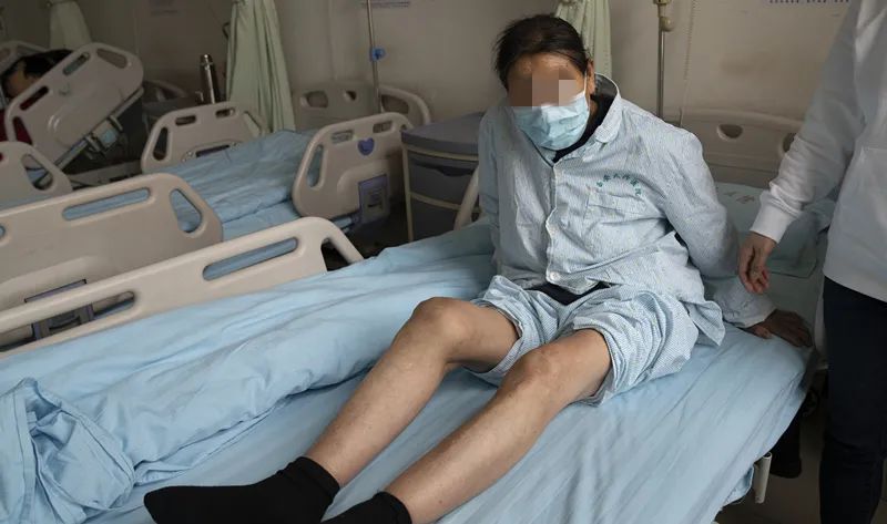 3月13日,离手术结束已经过了一个星期左右,在病房再见彭女士时,护士长和责任护士正在为她挽着裤脚,说是要下地走走,有助于康复。