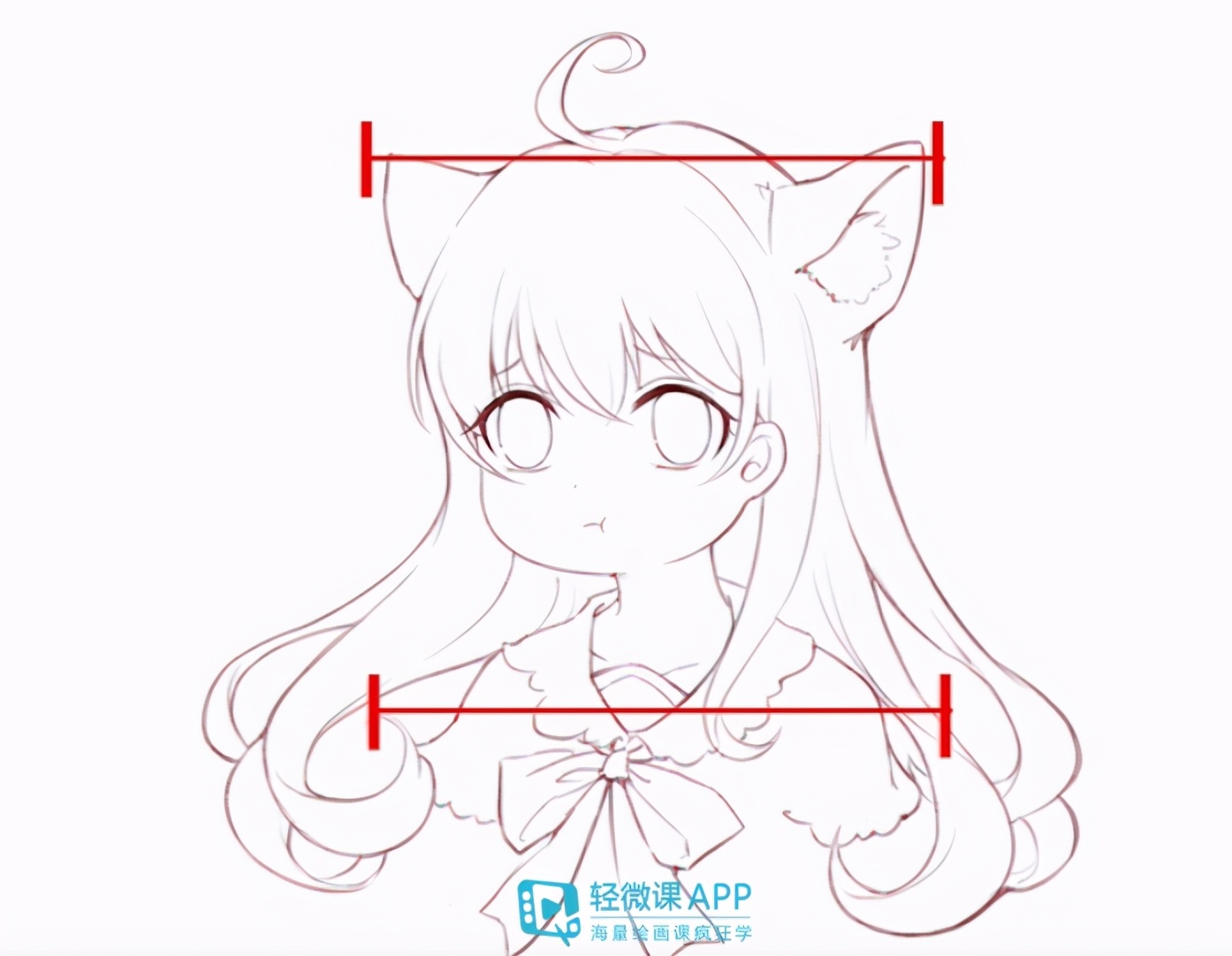 3、肩膀和头部基本差不多宽,头比例画大一点突显出包子脸