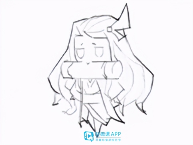 1、一般Q版人物是2比6的头身比例,画线稿时候要注意线条的流畅