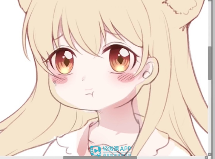 让脸蛋更Q弹可爱,细化头发和眼睛把脸颊转角的位置和下巴过度,画得更加圆润显得肉肉的感觉,眼睛也相对加大一些