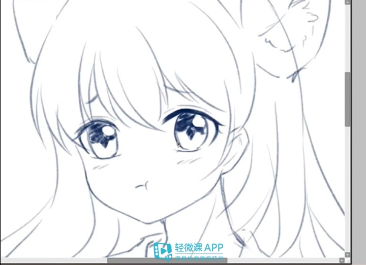 2、细化线稿,头和脸蛋都尽可能要圆润,脸颊弧度要大