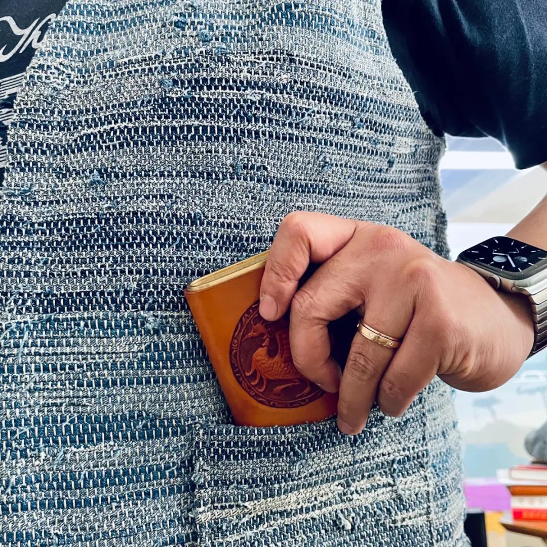 同事老李现场收了一个皮雕烟盒,终日爱不释手。