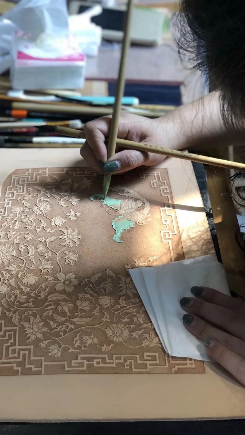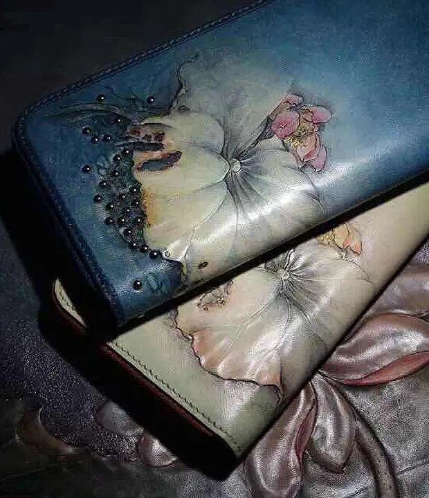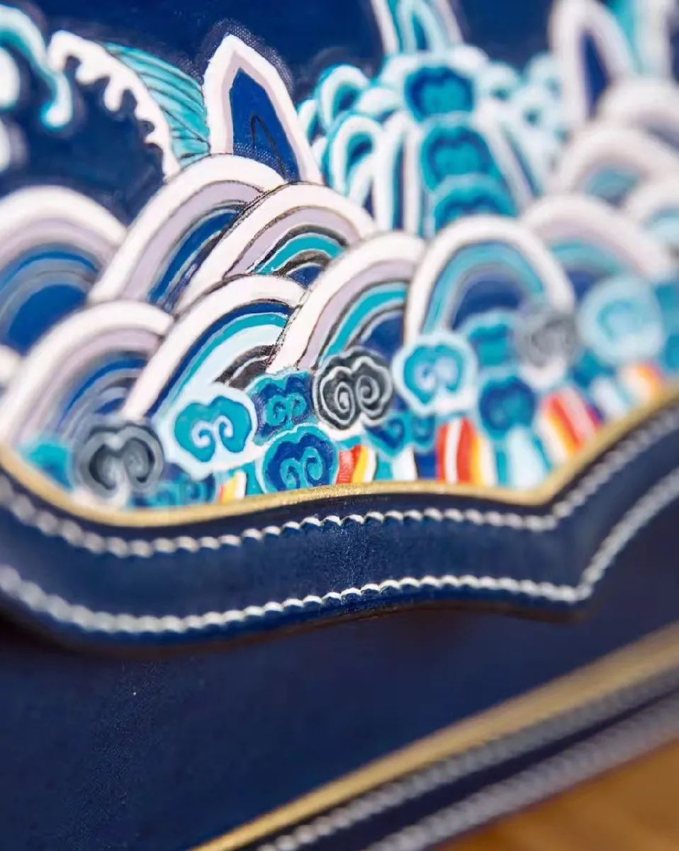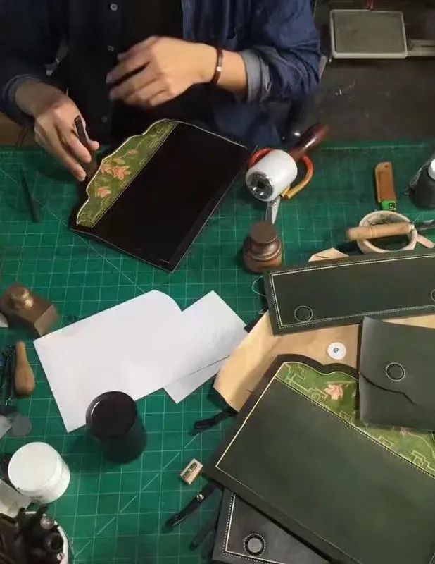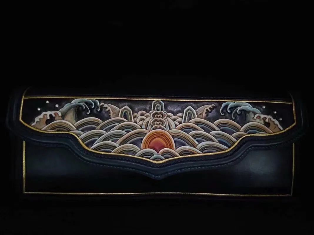 那十次的产品全部为手工制作,从工笔描图到手工雕刻、染色、缝制等一百多道工序全部手工完成。每一个箱包都是不可复制的艺术品。