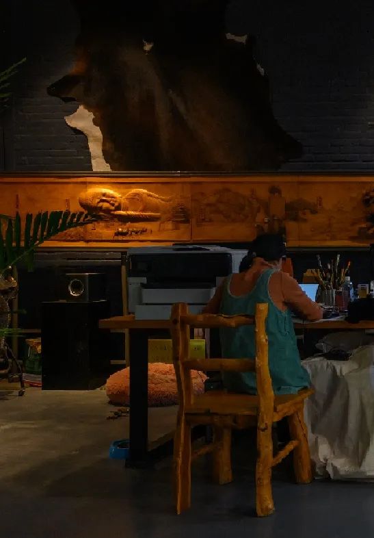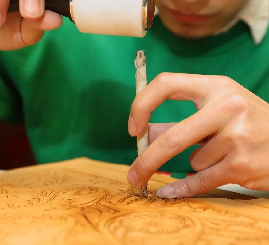 家学渊源是个主要原因。因为我父亲是研究中国文化的,从小唐诗宋词是必须背的。小升初那年,好不容易没有暑假作业了,感觉能玩个痛快了。结果我爸下班回来,手里拎着一摞书,那种草绳捆着的。我一看《古文观止》,还是没躲过去。现在我都能背出开篇《郑伯克段于鄢》:“初,郑武公娶于申,曰武姜,生庄公及共叔段......”我就是在这样的环境下长大的,所以我做那十次的时候,很自然的就把文化和皮雕结合起来了。