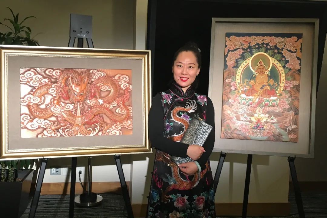 我给你举个例子。比如亚太艺术主题上,有个图案展现的是一只鸟落在树枝上,别人一看,能判断出这是Asian art,亚洲艺术,有可能是korean韩国的,有可能是Japan日本的,也有可能是中国的。