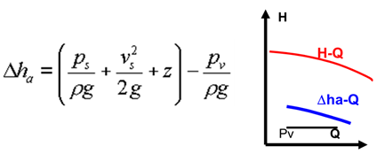 △ha—指泵工作时实际所具有的汽蚀余量,进口处液体的能头超过汽化压力头的富裕能量。取决于泵的吸入条件和液体的饱和压力Pv,而与泵无关。越大越好。