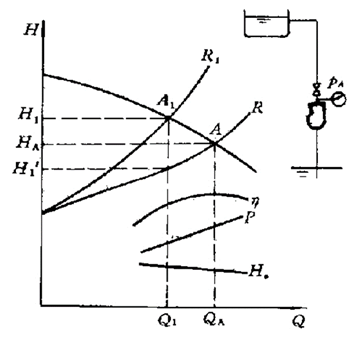 离心泵节流调节:
