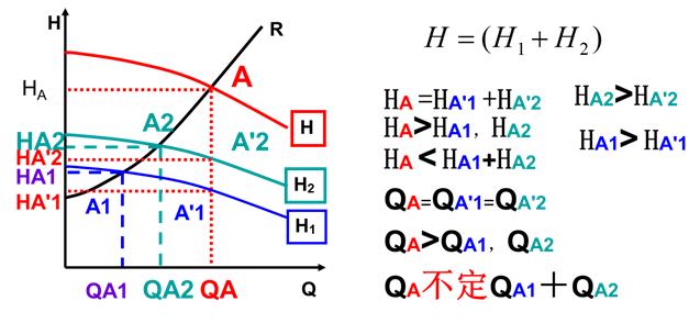 原则:流量相等,扬程相加。