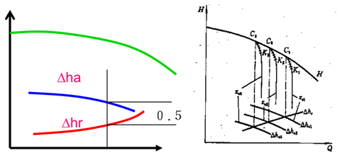 必须气蚀余量△hr随流量增大而升高,当泵的吸高Za逐渐增高时(Za3>Za2>Za1)有效气蚀余量△ha逐渐减小(△ha3<△ha2<△ha1)。