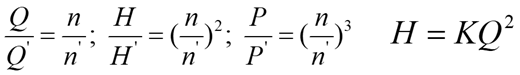 改变转速来改变泵的特性的方法。若输送液体不变,改变转速前后满足相似三定律,并称为比例定律: