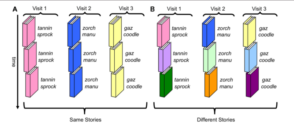 研究人员对第一组孩子重复朗读3遍同一个故事,对第二组孩子则分别朗读3个不同的故事。