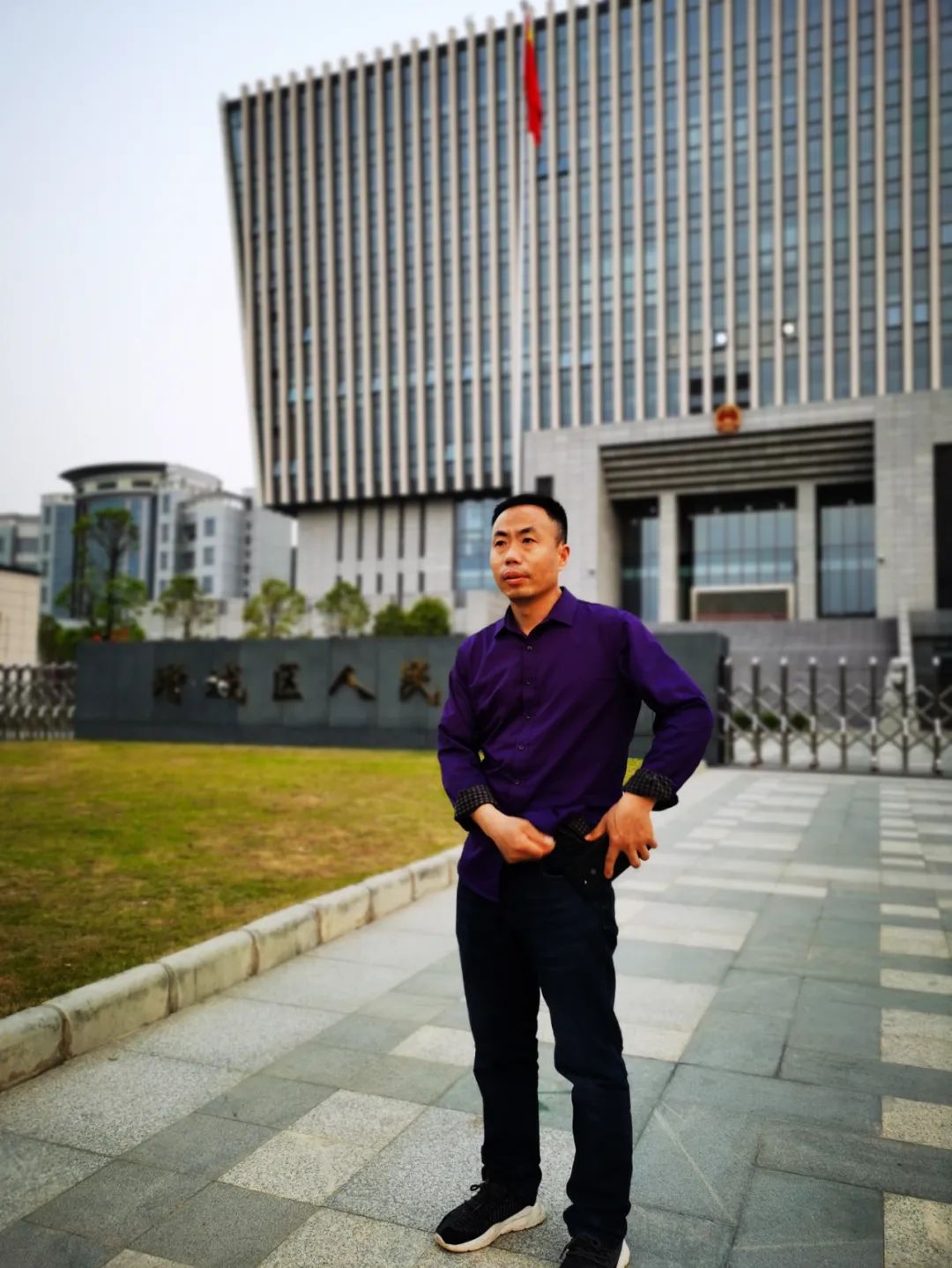 3月25日,被拐儿童申聪的父亲申军良在广州增城法院门口。澎湃新闻记者 朱远祥 图