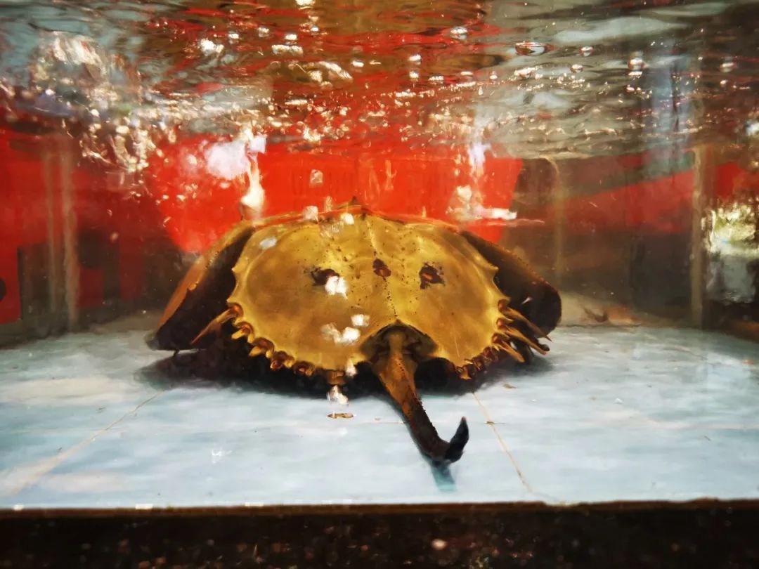 鲎是一种4亿多年前就已存在的生物,有“活化石”之称。其血液由于含铜的蛋白质结合物,呈蓝色,具有很高的药用价值,系内毒素检测试剂的原料。鲎试剂接触含内毒素的注射剂样品后会凝固,这种检测方法便捷、省力,是目前收录在药典中的首选检测法。