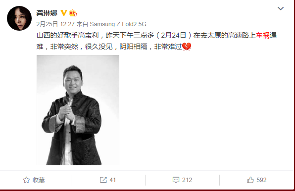 高保利去世后,龚琳娜、谭晶等圈中好友也都发文悼念,纷纷表达了心中的不舍之情。