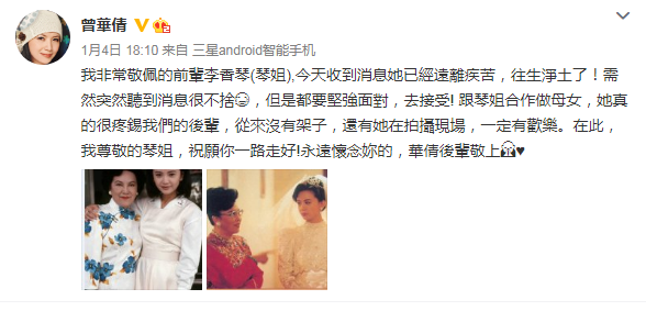 她去世后,林峯、曾华倩等圈内艺人都有发文悼念。