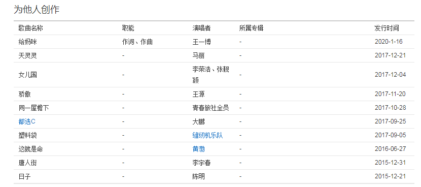 他的才华远不止于此,他还为王一博、王菲、王源、李宇春等知名艺人创作歌曲,他一直默默地致力于乐坛的发展,给乐坛留下了巨大的影响力。