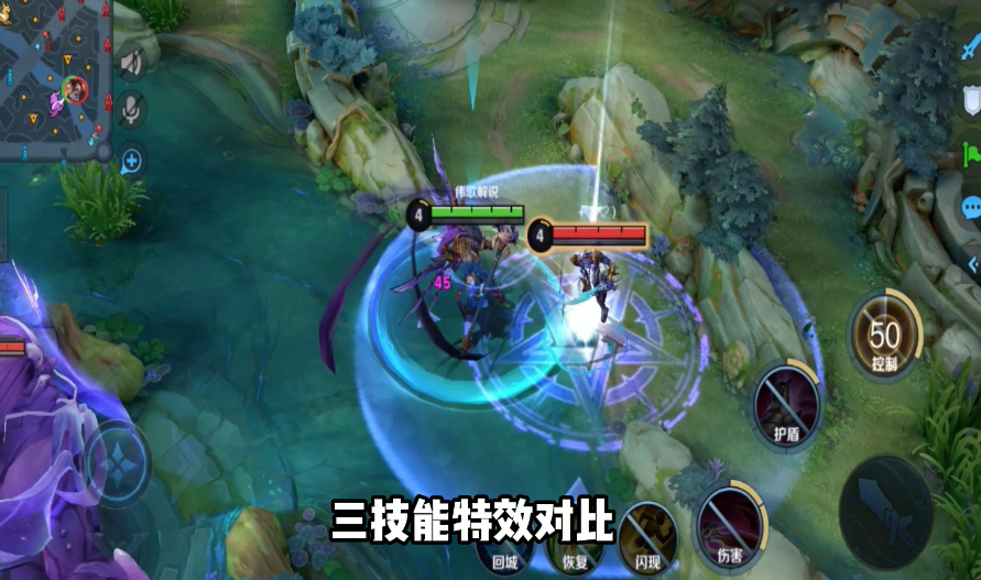 3技能特效对比,天魔缭乱的圈圈范围明显比幽冥之眼的圈圈范围广,而且还更加酷炫,不过幽冥之眼大招之后的1,2技能特效就会比之前的好看很多。