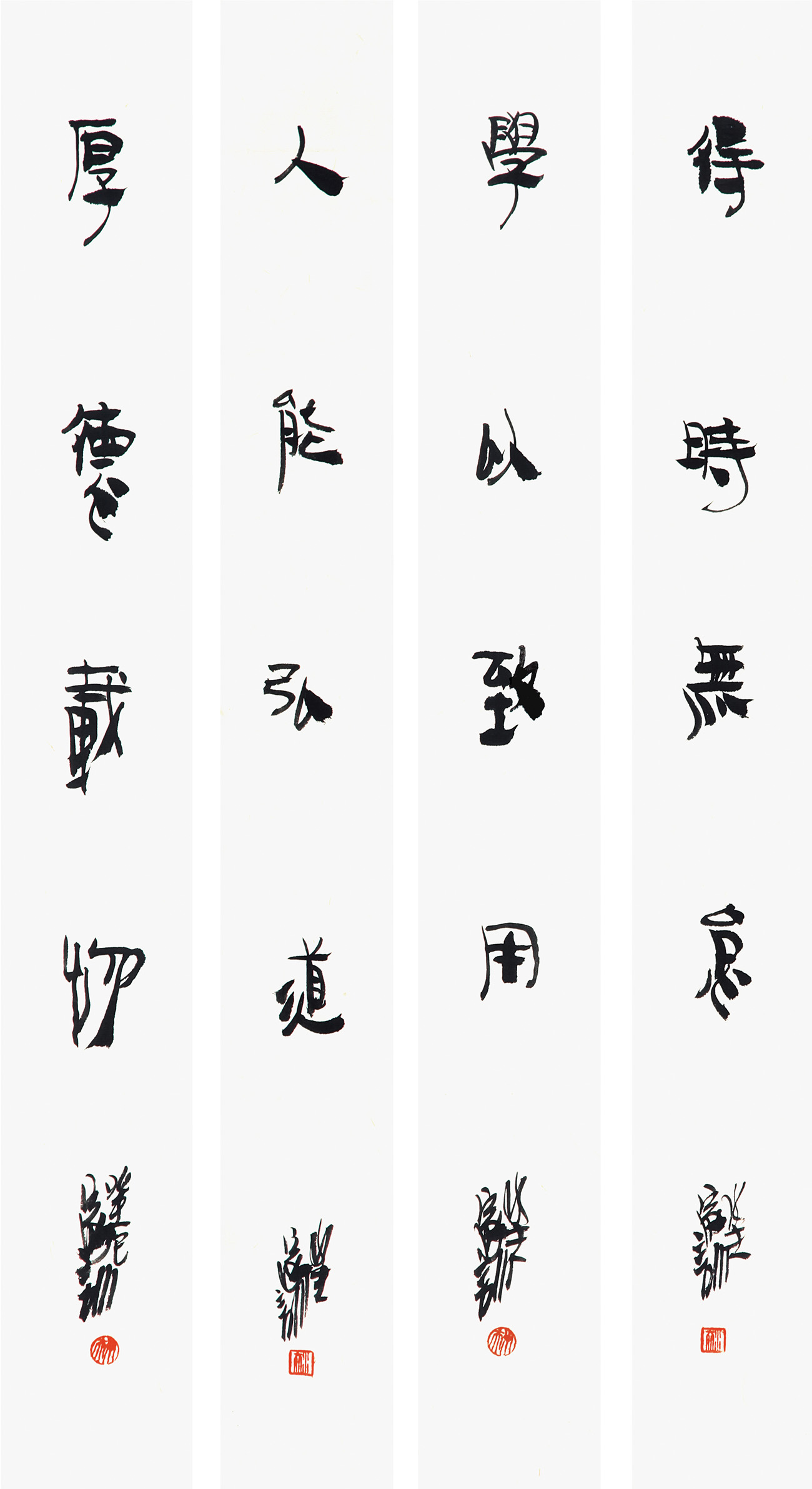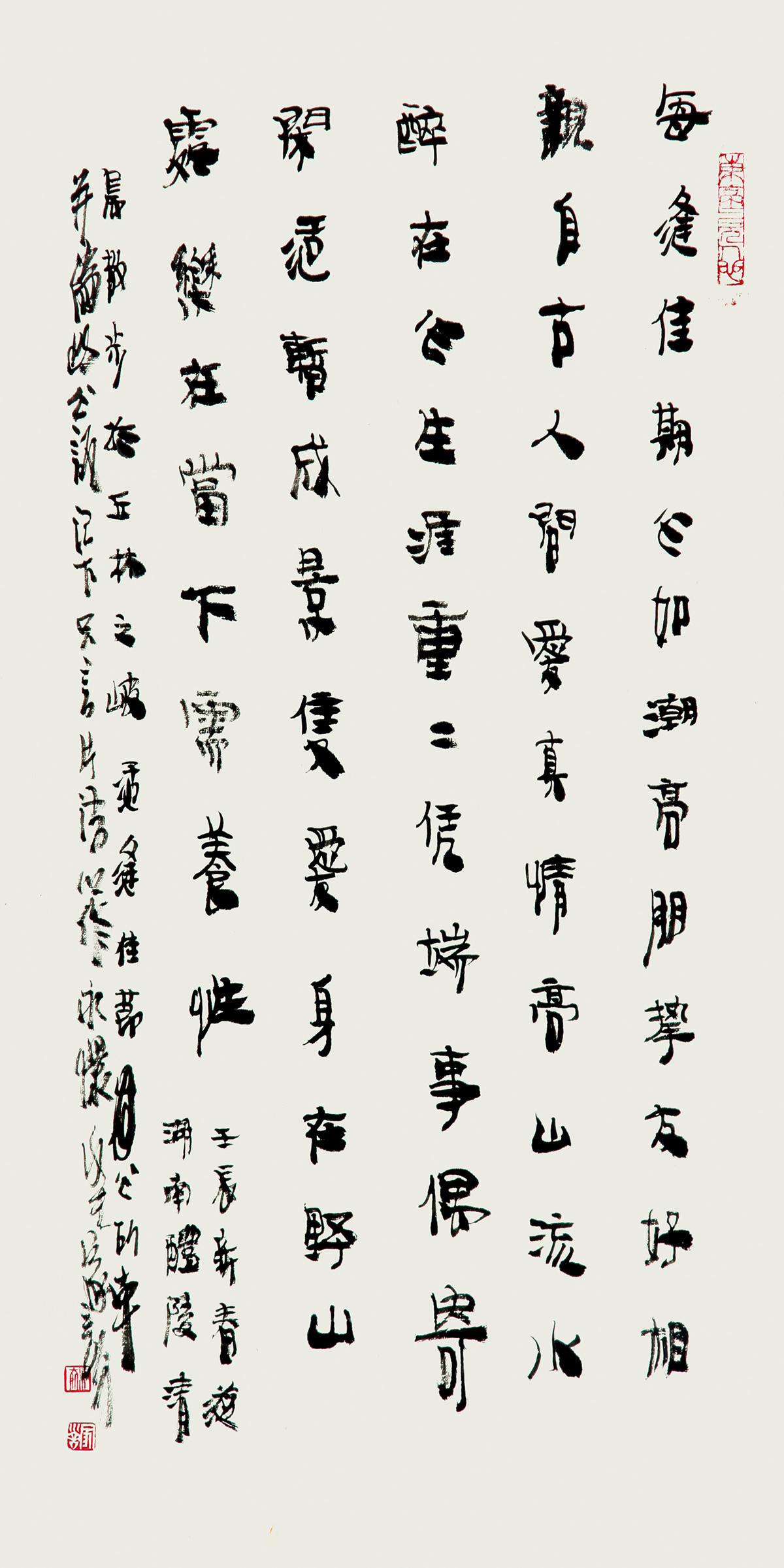 王家训恰是一位重“神采”与意气之人。他初由《乙瑛碑》《张迁碑》(隶书)入手,继而习《张黑女墓志》《张猛龙碑》(魏碑),后临《崔敬邕墓志》为最多,以及竹简,亦喜读赵之谦、金农、康有为、张书旗、沈子承等一些个性强的书画家的作品。