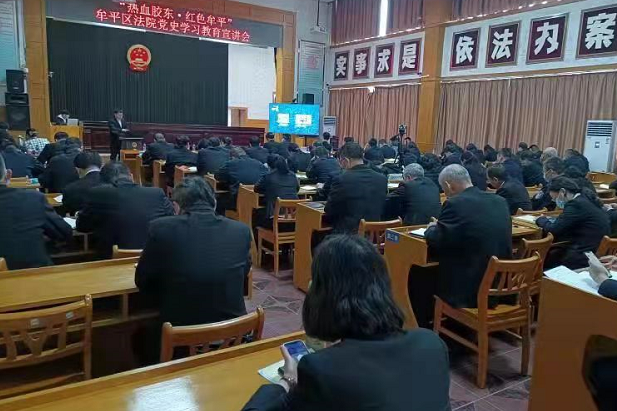 胶东在线3月27日讯 “为人民的利益生死不怕,对付敌人就一定神通广大。在那个枪林弹雨、出生入死的环境里,杨子荣书写了一次次出神入化、惊险动人的传奇故事。”2021年3月27日上午,“史敢当”烟台讲堂—烟台大学党史学习教育重点团队“热血胶东?红色育人”宣讲团应邀走进烟台市牟平区人民法院,为全体人民法官讲述了剿匪英雄杨子荣的真实故事。此次宣讲活动由烟台大学与烟台市委党史研究院联合主办,烟台大学化学化工学院、马克思主义学院承办,是牟平区人民法院党史学习教育的系列活动之一。