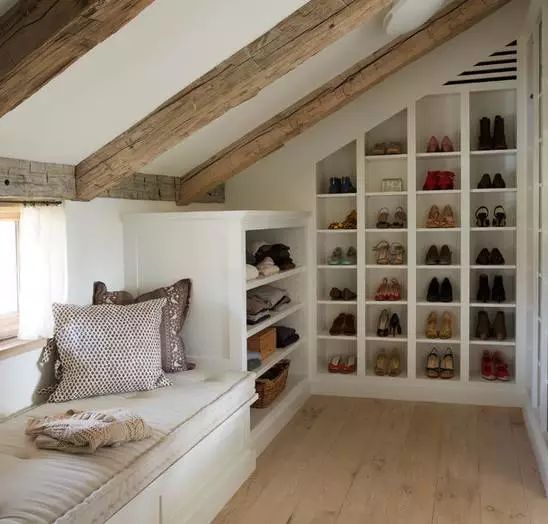 ▼把阁楼做成衣帽间,搭配一个飘窗也是美的不要不要的。