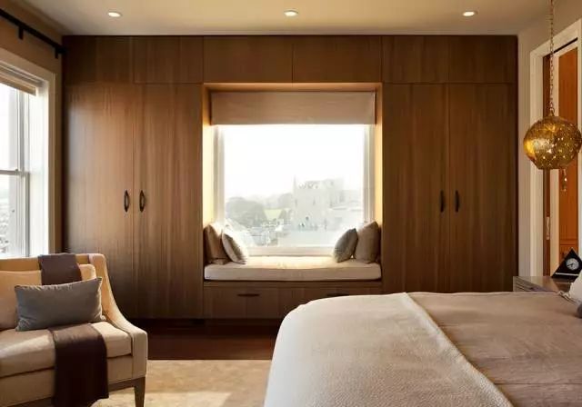 ▼ 飘窗衣柜一体规划,收纳性能杆杠的。