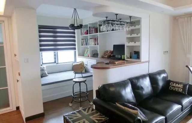▼ 以吧台做隔断,飘窗区也能够作为会客区的一部分,收纳休闲两不误。