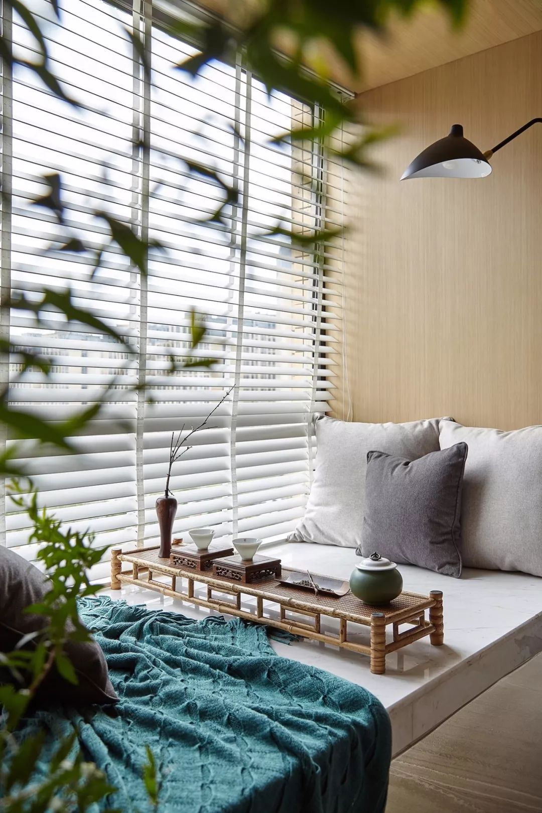 ▼ 卧室规划一个飘窗,可观景、下棋,种些美美的绿植。