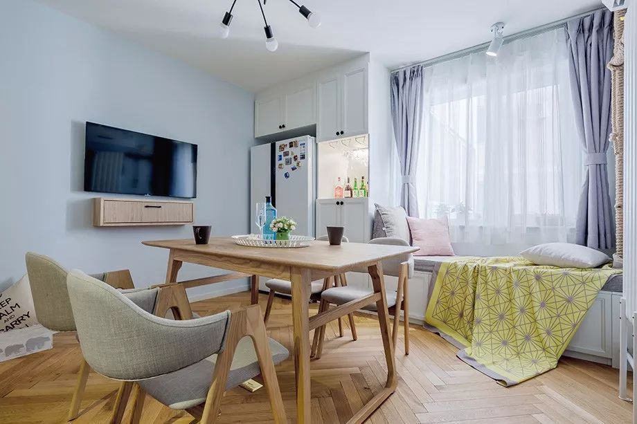 ▼ 像这种在房间转角规划一个卡座,既能做飘窗还能做成小餐厅,对于小户型而言,是一款非常棒的规划。